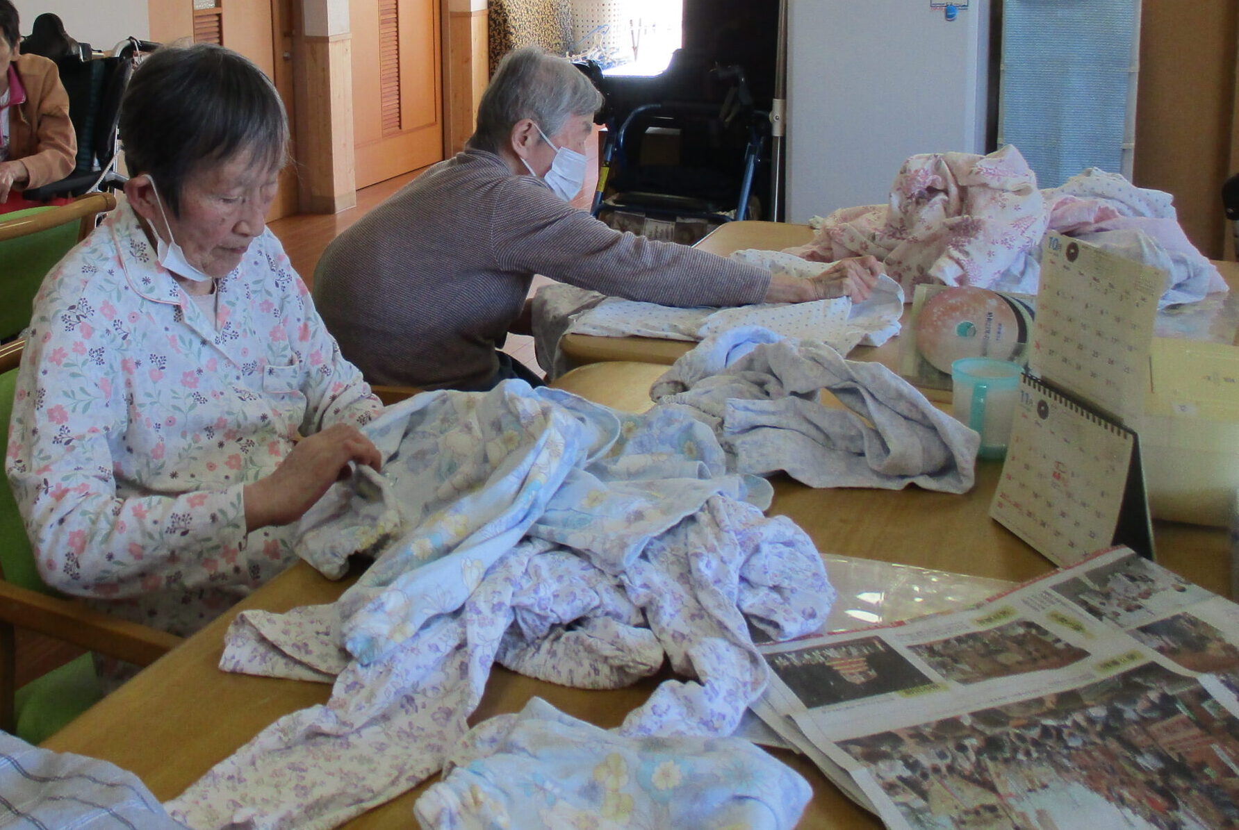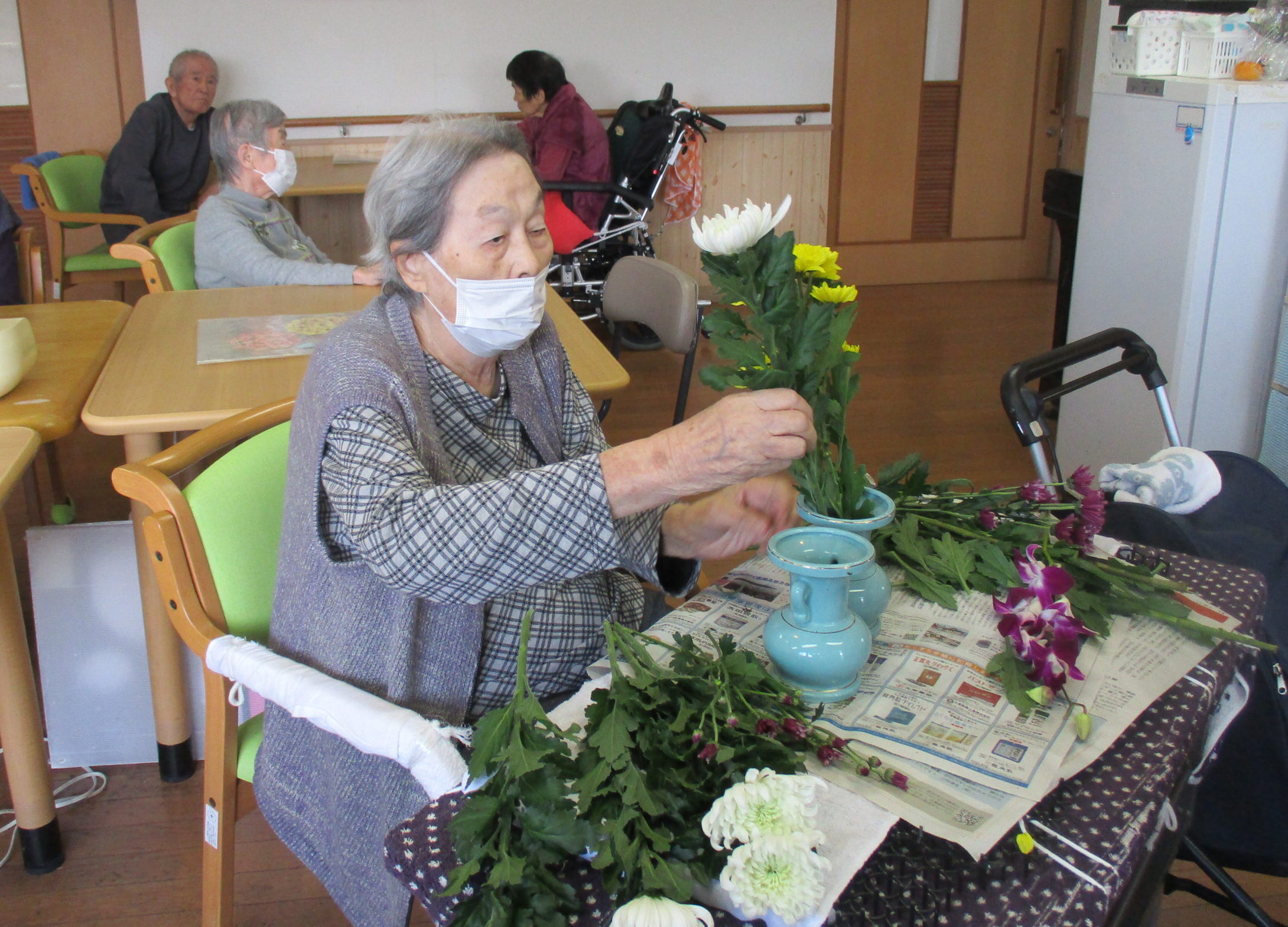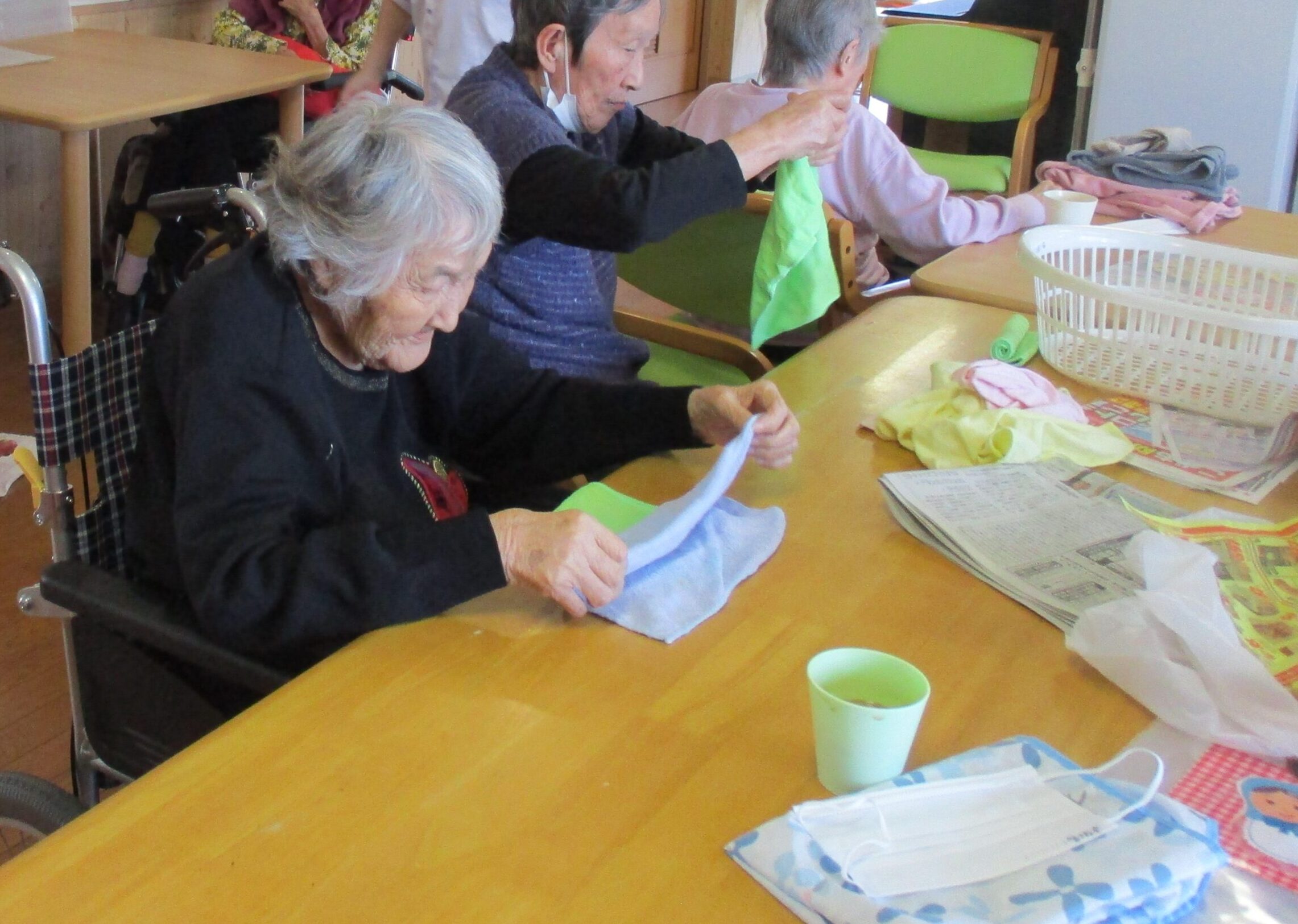 ルンビニー通信 2025.11.25 お仕事 お茶ッ葉、詰めとくね😊 私も手伝うよ! 台所仕事は任せといて😀 キレイに巻けよるよ❣️ みんなで丸めるよ(❁´◡`❁) 生け花は任せといてね🧡 上手に切れよるよ😊 いっぱいあるね!頑張ろう!