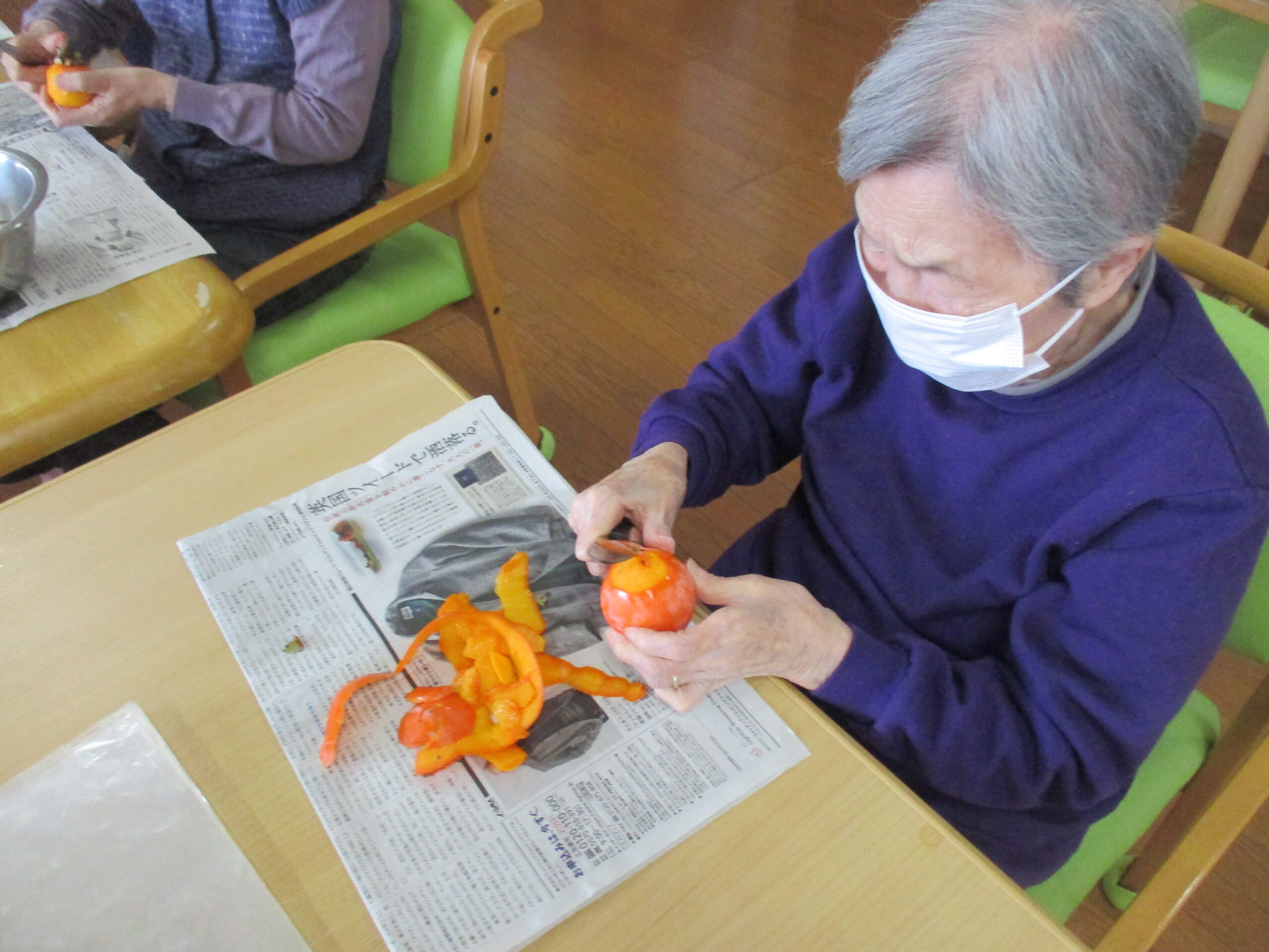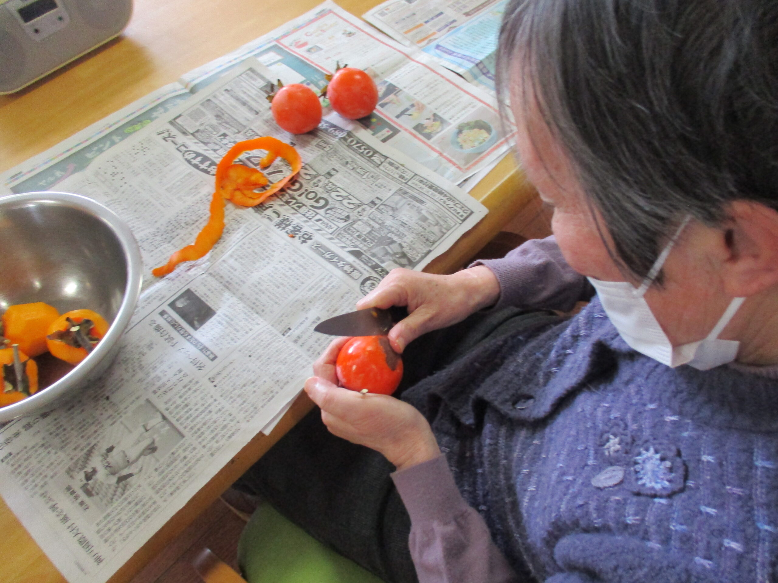 ルンビニー通信 2025.11.25 干し柿・体操 今年も柿が出来ました。 干し柿を作りましょう! 包丁さばきがお上手です! 出来たよ😀 美味しくな~れ 体操始めるよ! 斜めに伸ばして~ 足腰鍛えるよ!